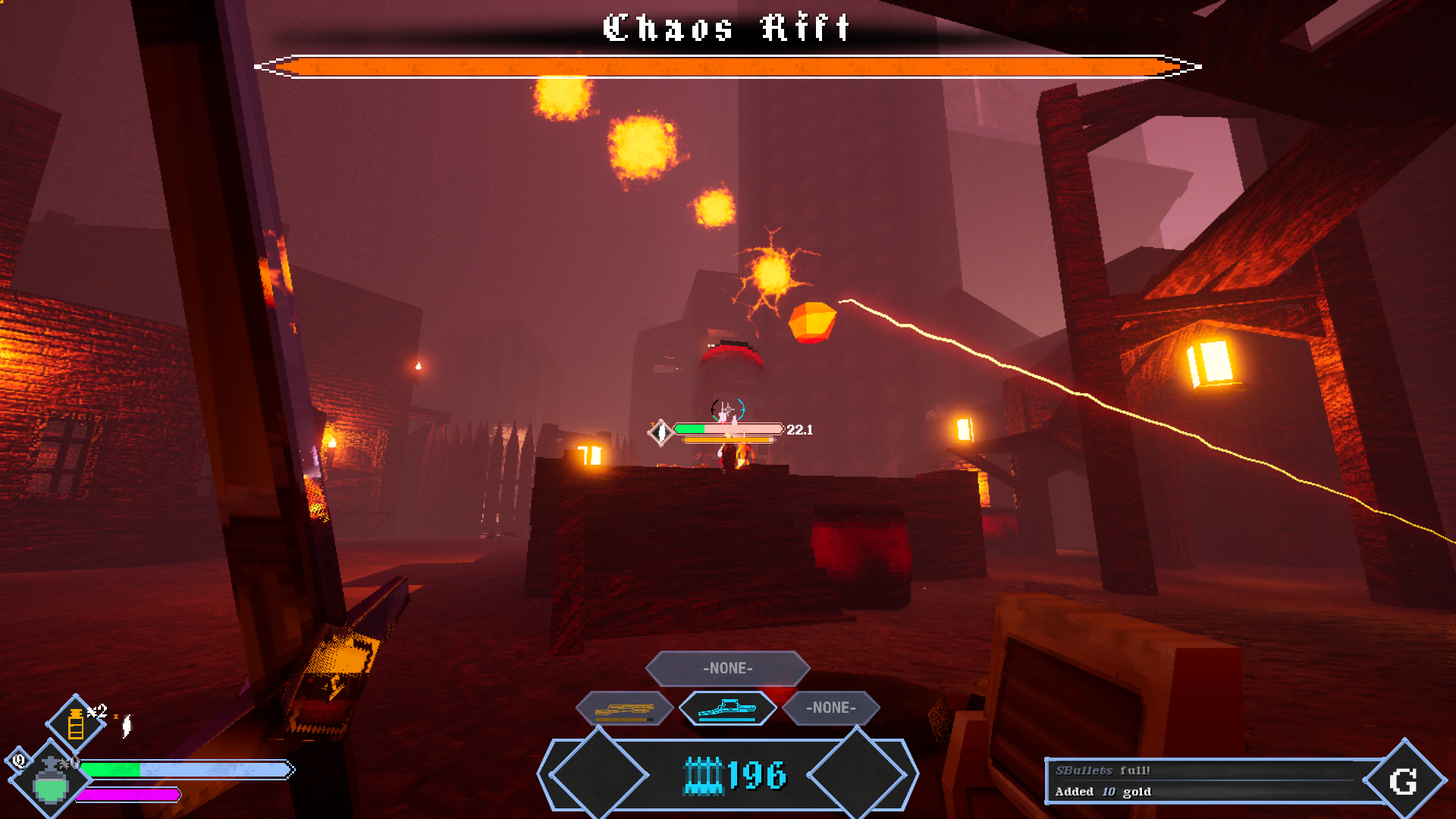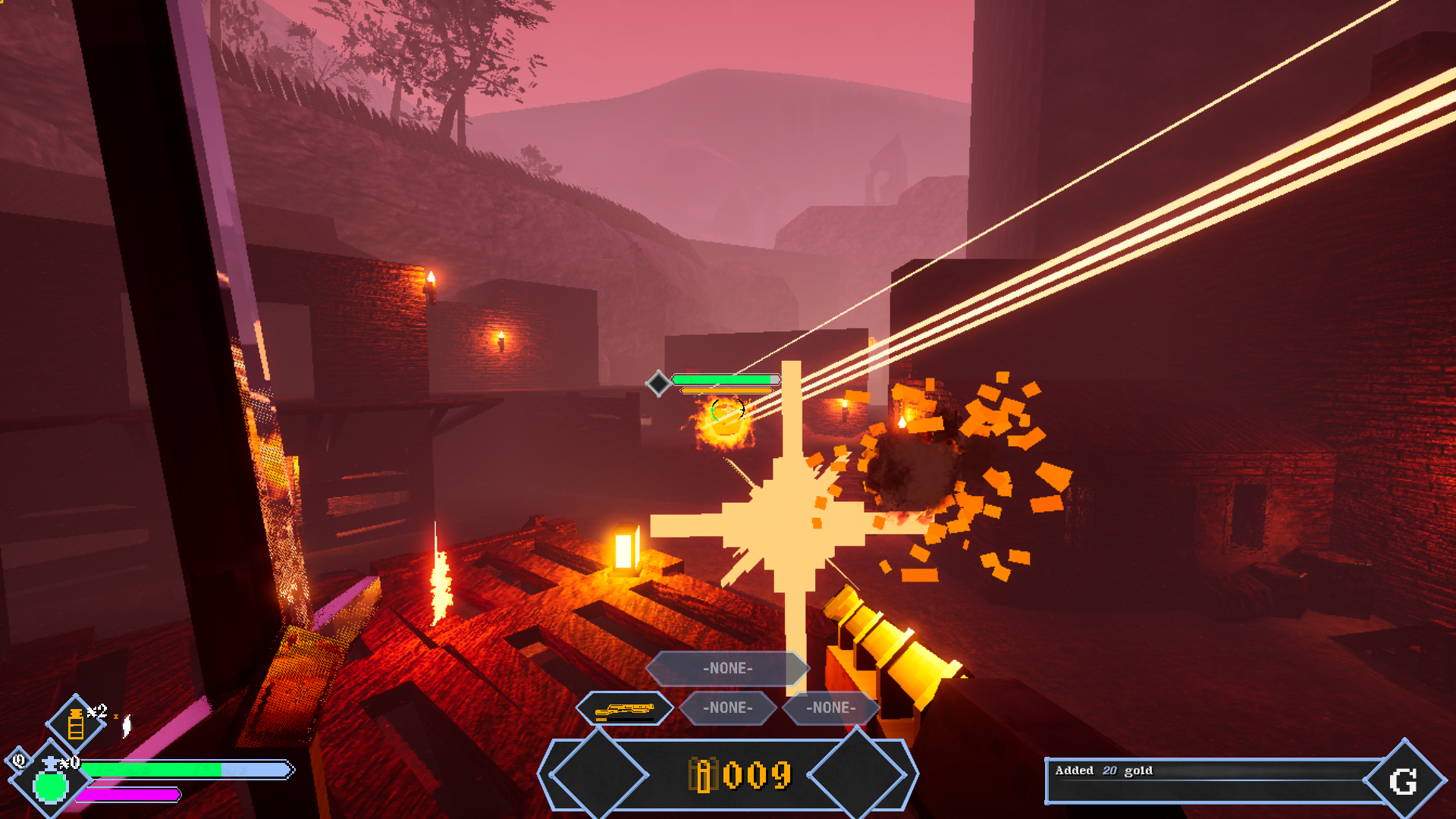 I like the project so far - when I got the shotgun and saw the shotgun blast through barrels like paper mache I said "hell yeah" out loud to my audience of one partner and one cat. I also crashed the game by jumping off the edge of the world like an idiot, but if it helps, the crash only happened when my character would have collided with the ground. I was fine the way down, but the engine had a fatal crash when I splattered on the pavement lmfao. I'm excited to see what updates come out, and what you come up with next.