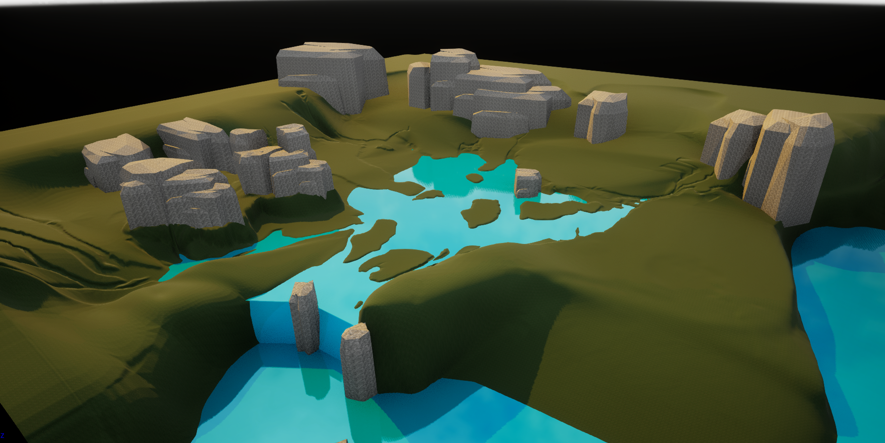 Then I can easily import the final render made inside of Blender into Unreal Engine as a height map, which creates the following result: