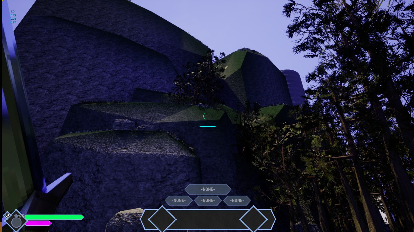 Problems with the current terrain however, is the lack of real mountains. The terrain is at max height by the borders, where it just plateaus. I think I'll simply solve this with some large border / Out of Bounds meshes however, and keep the landscape as mostly the playable surface area of the game.