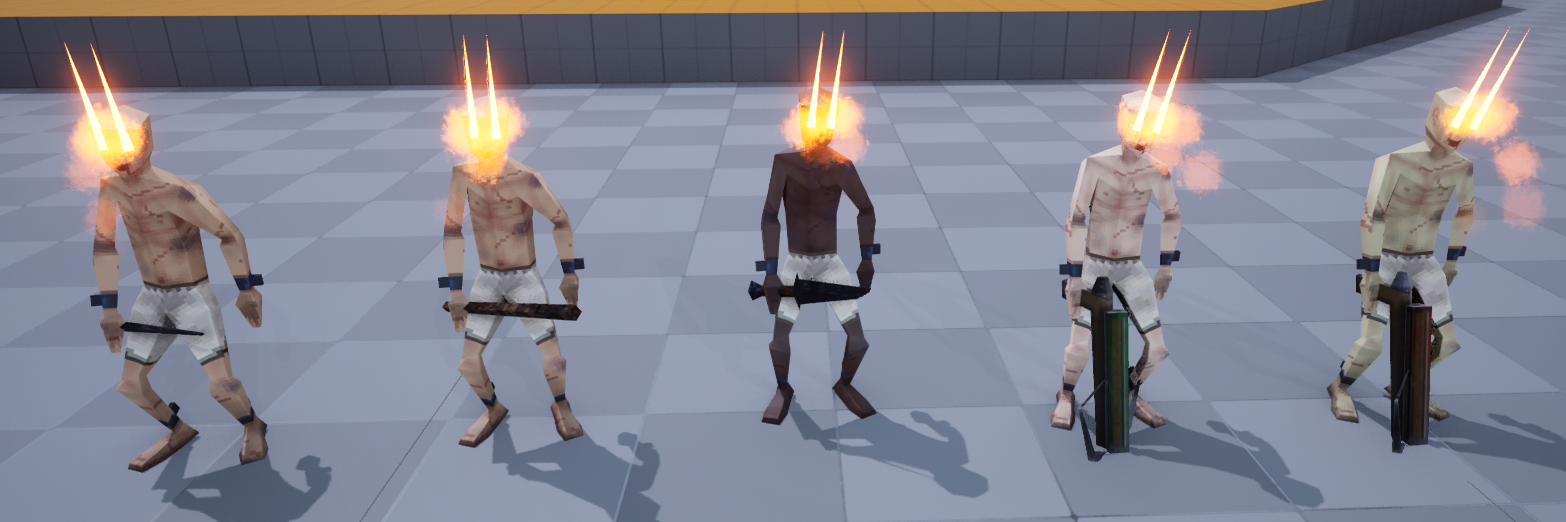 New enemy type prisoners are being implemented! These guys are a sub-class of a larger category of enemies. One of their unique features is their dynamic looks, and weapons. So each enemy can have a different skin, as well as a random weapon model.